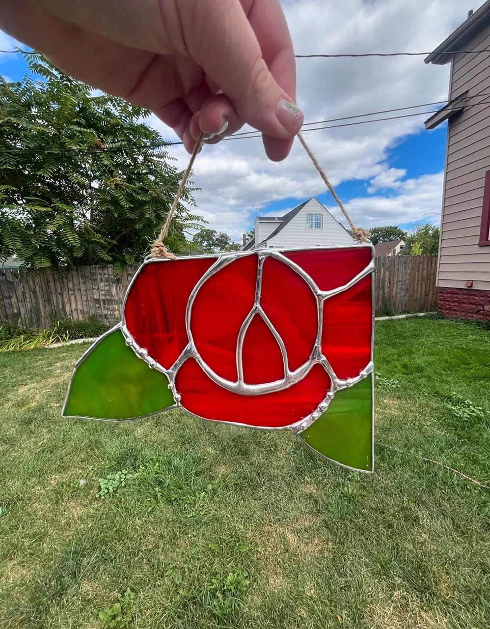 Super cute rainbow textured glass and marbled pink and yellow. Purple bead adds a little more sparkle! Made with lead based solder, wash hands after handling.